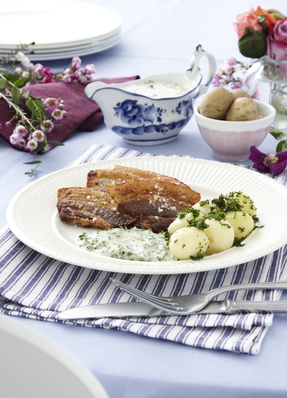 Vil du prøve noget andet end persillesovs? Se vores opskrift på stegt flæsk med kold persillecreme