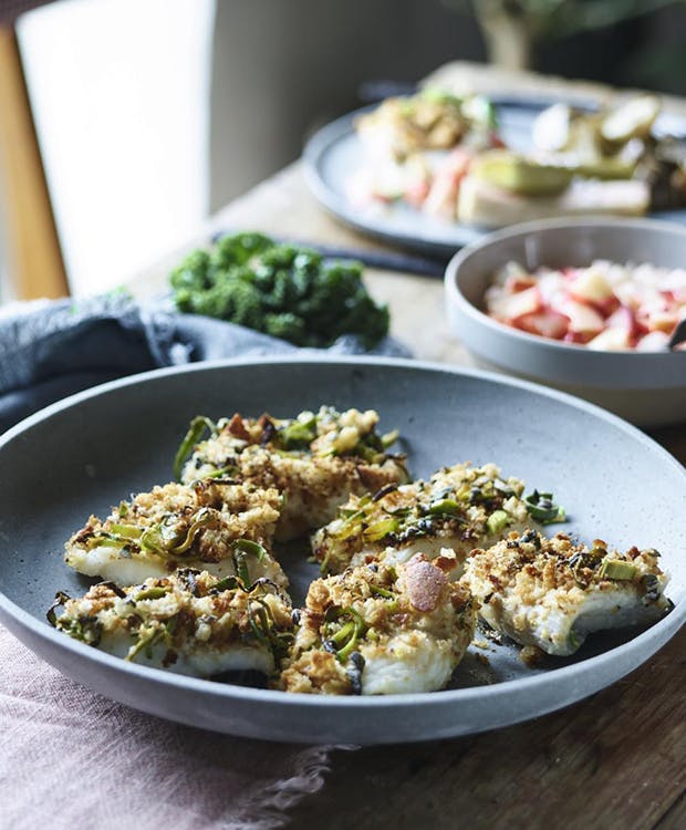 TIP: Savner du kartofler til retten, kan du sagtens servere bagte eller kogte kartofler til. Skræller du kartoflerne, kan du gemme skrællerne og bage dem i ovnen med olie og salt i 15-25 minutter. Servér dem som snack til drinken i stedet for grønkålschips.