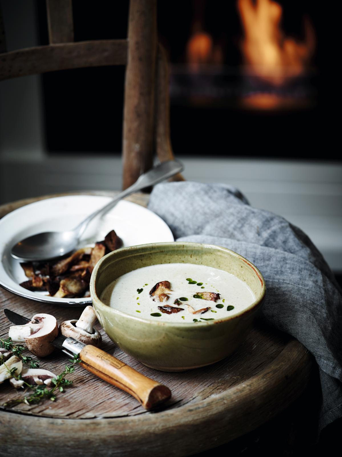 Det er stadig koldt udenfor, men vi går mod lysere tider. Det hylder vi med en nem opskrift på den lækreste svampesuppe. Nyd det varme måltid med brød til.