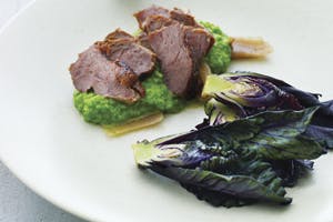 Start med at skære hinderne på rå svinekæber af. Skræl og skær skalotteløgene i både på langs. Varm olien i en pande og brun dine svinekæber på begge sider. Tilsæt skalotteløg, fennikelfrø, peberkorn, laurbærblade og salt. Hæld hyldeblomstsaft, hyldeblomsteddike og hvidvin i. Lad retten simre i 1 time. Når den er færdig, tages 2 dl væde fra og resten holdes varmt. Hæld ærter og væde i en blender sammen med salt og peber, og blend til puré. Skær kålen i både, og steg dem i smør på panden. Skær dine svinekæber i skiver, og server dem og skalotteløgene med ærtepuré, kål og kogte nye kartofler.