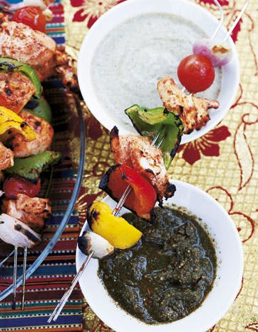 Spyd: Skær peberfrugterne i store stykker og løgene i halve. Sæt kød og grønt på spyd og grill dem ca. 20 min. til løgene er møre, og kødet er helt gennemstegt. Pynt med limebåde og et drys frisk koriander.