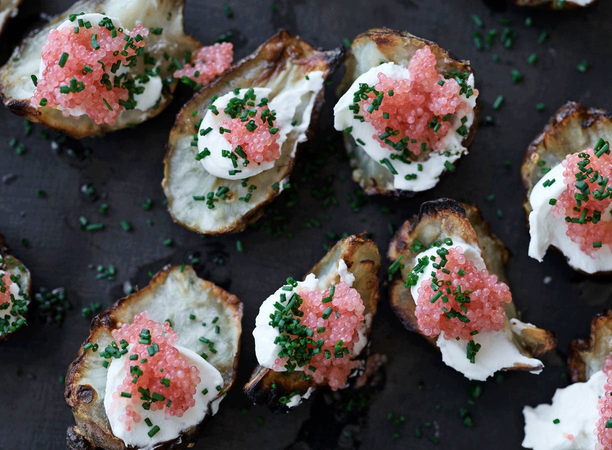 Her får du en opskrift på bagte jordskokker med stenbiderrogn, friskost og purløg.