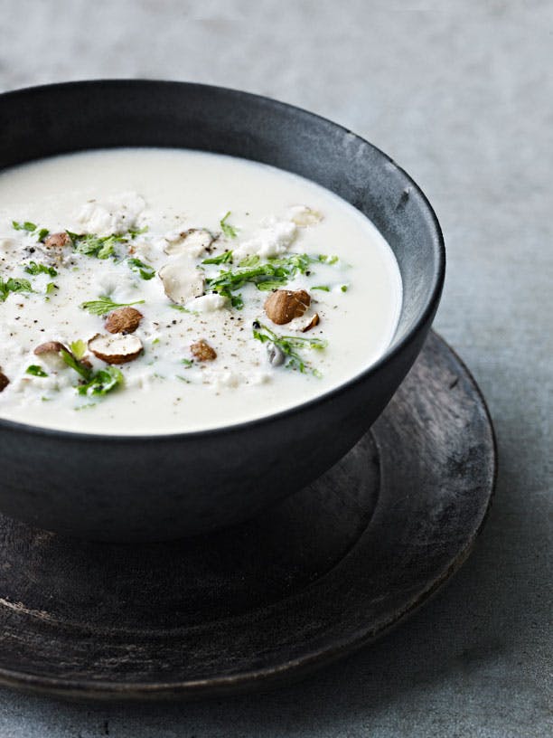 Blomkålssuppe med østers, hasselnødder og kørvel