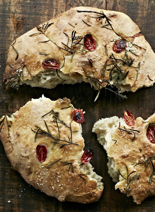 Brød var for mange år siden basismad for italienerne og havde til opgave at fylde maverne. Selvom brød stadig er en vigtig del af et italiensk måltid, ses det mere som tilbehør til måltidet og regnes nu næsten som en luksus fremfor dets originale rolle ved bordet. Italienerne har en skik for at servere et stort brød ved middagen, og herefter "bryde" brødet ved bordet i stedet for at skære det ud med en kniv. Dette ses som en venskabelig gestus og handler om, at man skal huske at dele. Det italienske brød varierer fra egn til egn, og smagsmuligheder er der mange af. Vi har ladet os inspirere af Piemonte i det nordlige Italien med denne opskrift på madbrød med tomat, rosmarin og havsalt.