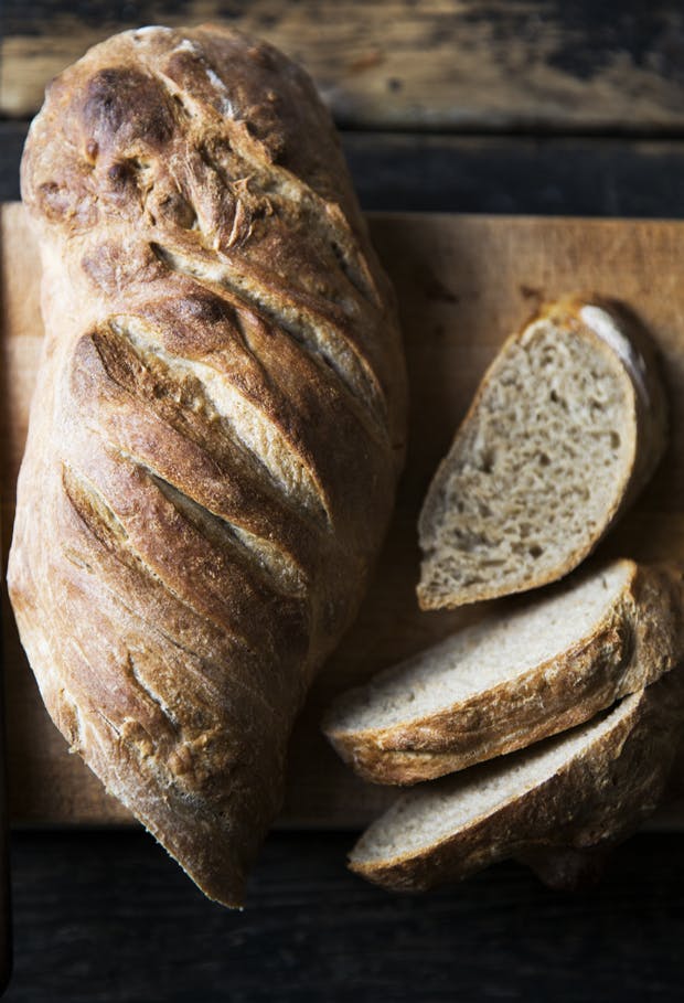 Godt hjemmebagt brød tager tid men er det hele værd. Brødet her er bagt med en kombination af biga og gær som hævemiddel. En biga er en slags fordej, som også hæver brødet, men Trine Hahnemann bruger typisk en biga i kombination med gær. Når først du har bigaen, kan den holde sig længe, og til mange, mange brød. Husk at kvaliteten af det mel, du bruger, er afgørende for resultatet. Køb godt økologisk mel.
