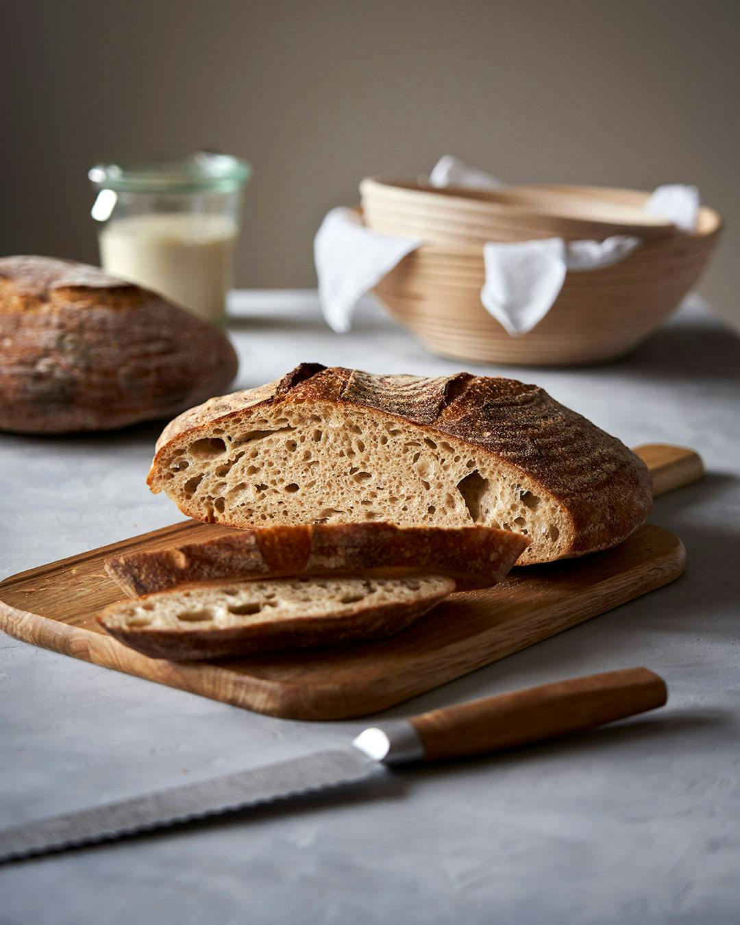 Surdej er en slags flydende gær. Den kan laves af både rug- og hvedemel og er nem at lave. Når først du har lavet grunddejen, kan du lave en masse forskellige brød på den. Her får du både opskriften på et rustikt surdejsbrød med en saftig krumme og en sprød skorpe!