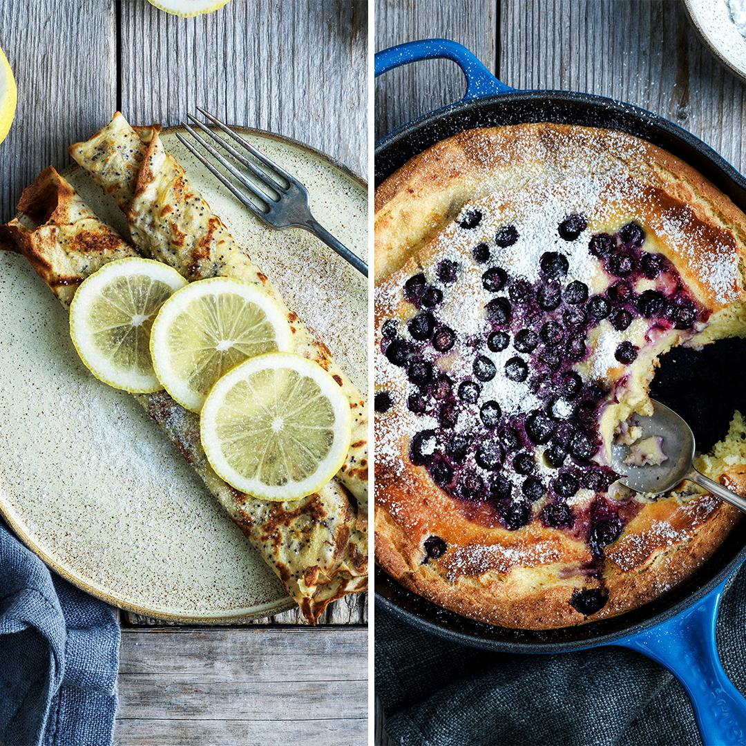 Tag de klassiske pandekager til et helt nyt, syrligt og knasende niveau, og rør citron og birkes i dejen. Det er nemt, men virkelig lækkert!
