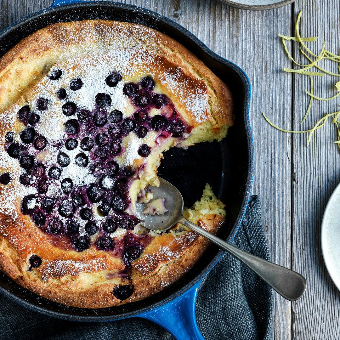Stor ricottapandekage med citron og blåbær