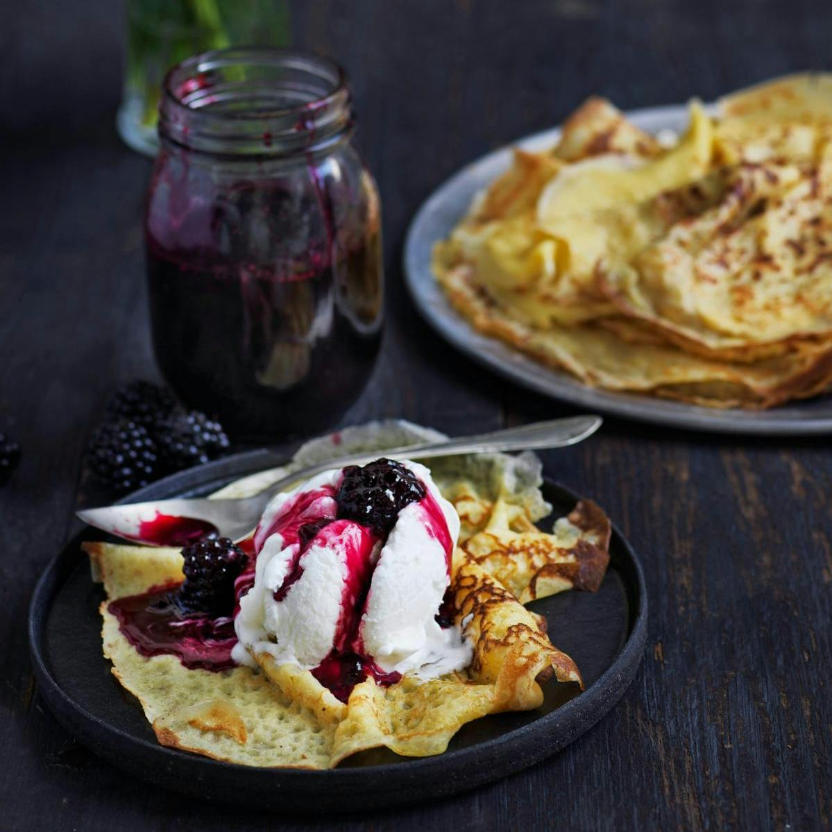 Servér en stak klassiske pandekager med hjemmelavet brombærsirup, og vær sikker på, at din dessert falder i god jord hos dine gæster. Få opskriften her!