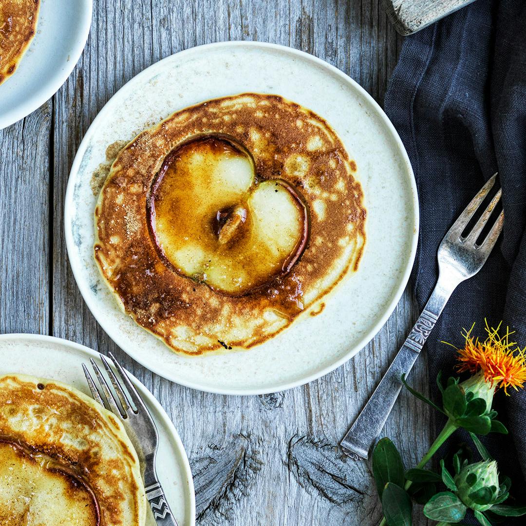 Bid i det søde æble, når du nyder din pandekage! I denne opskrift har vi bagt den søde frugt ind i den velkendte kage, og resultatet er både dekorativt og virkelig velsmagende.