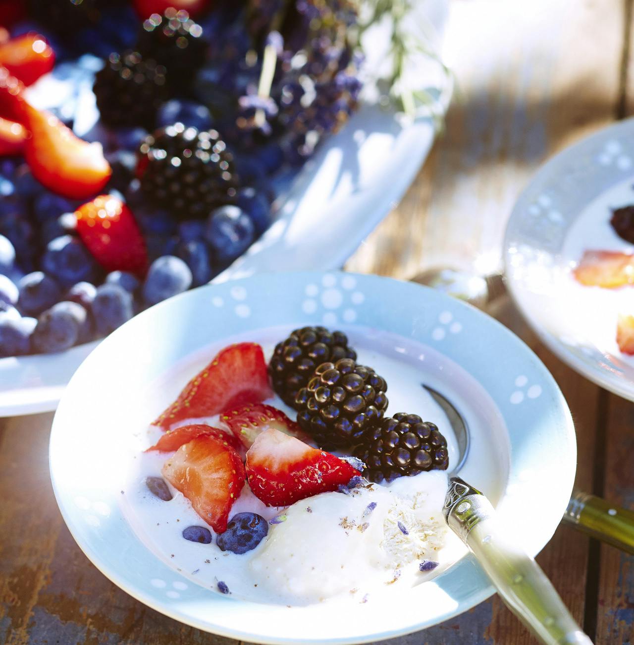 • Frugt og bær - skær lidt frugt ned og bland de forskellige slags sammen i en skål og server sammen med is eller vaniljecreme.
