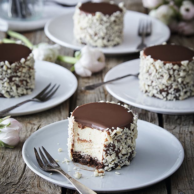 Vi har fundet vores nye kagefavorit! Disse små, lækre kagebomber er nemlig fyldt med det bedste af det bedste - fra kakaobund, midten af passionsfrugtmousse til cremet chokoladeganache.