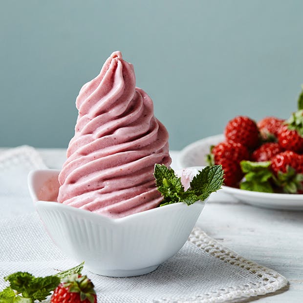 Frisk, frossen og helt igennem fantastisk lækker! Denne frozen yoghurt med jordbær smager af sommer og sol, og med dine egne friske jordbær fra haven bliver den kun bedre.