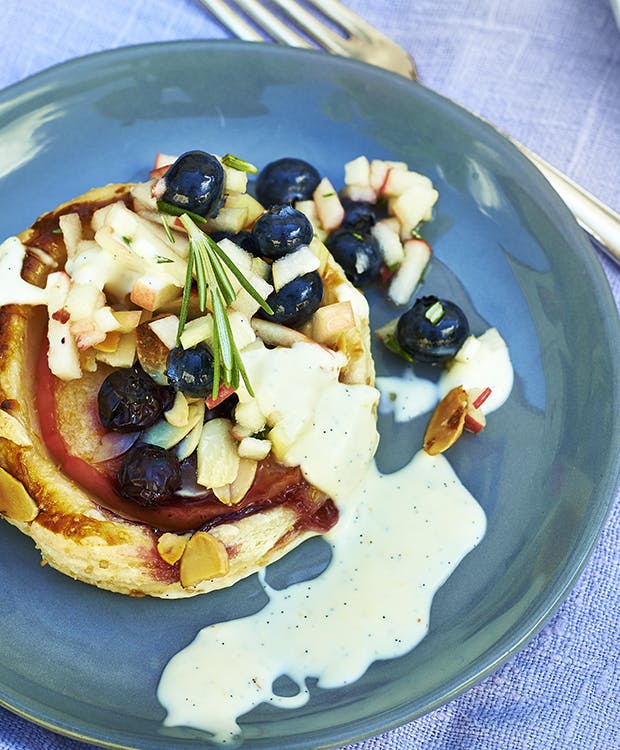 Byd dine gæster indenfor i varmen med denne uimodståelige opskrift på æblegalette med dertilhørende vaniljecreme og æblesalsa. Brug efterårets sprøde æbler, der her får sødt selskab af en vaniljecreme!