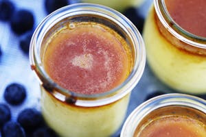 Tænd ovnen på 160°. Hæld mælk og fløde i en gryde sammen med stjerneanis og kanel, og varm op til lige under kogepunktet for svag varme. Lad mælkeblandingen trække i 10 min. væk fra varmen. Pisk æg og sukker sammen, og rør den afkølede mælkeblanding i ovnfaste glas eller skåle. Sæt skålene i en bradepande med vand, og bag dem i 25 min., til de er faste. Stil i køleskabet i 2 timer. Læg 1 spsk honning på hver skål creme, og sæt dem under grillen, til honningen får en dyb, gylden farve.