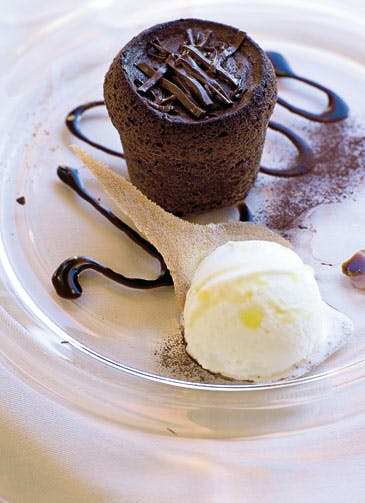 Chokoladefondant med olivenolie-is