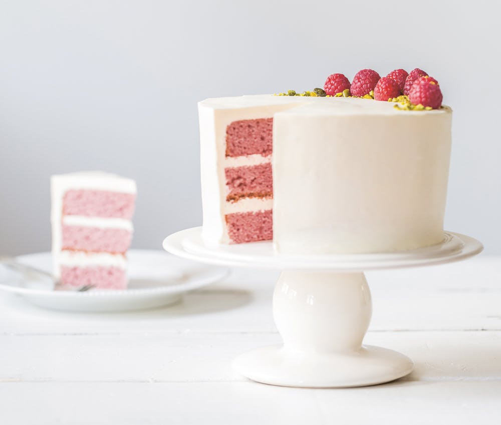 Denne farvefine lagkage fra Copenhagen Cakes er forener smag og æstetik på bedste vis. Når du skærer et stykke af kagen, bliver du mødt af det smukkeste hindbærlyserøde snit med hvide lag af blød mascarpone og cremet flødeost. Opskriften er til alle, der har mod på at kaste sig ud i en hjemmelavet festkage eller bryllupskage, hvor man selv som begynderbager får et helt fantastisk resultat.