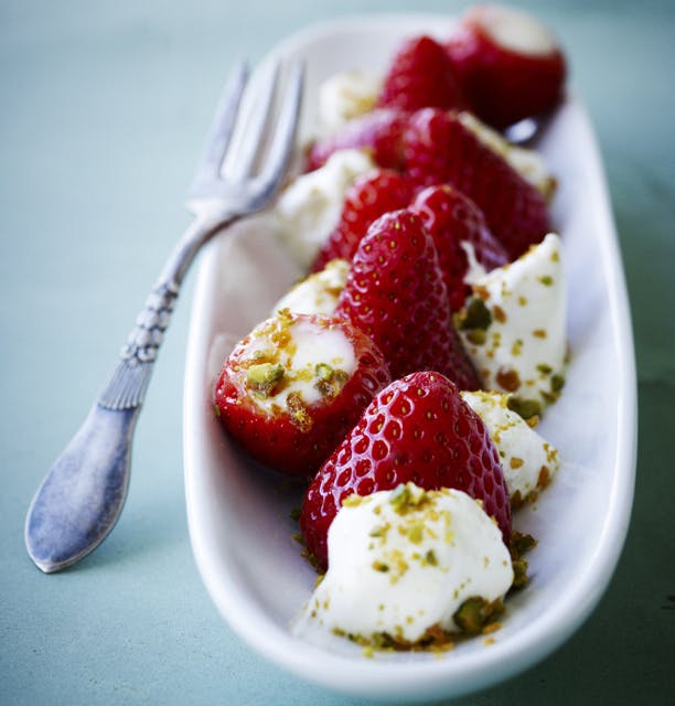 Lav en anderledes dessert med de søde jordbær. Herunder får du opskriften på lækre jordbær med citroncreme på pistacie-nougatine. Et sødt punktum efter en lækker sommersalat eller en middag serveret fra grillen.