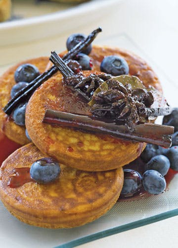 Server de nybagte vafler lune med friske bær, f.eks. blåbær, og evt. stænk af en hurtigkogt lage af sukker, vand, citrusskal og krydderier efter smag.