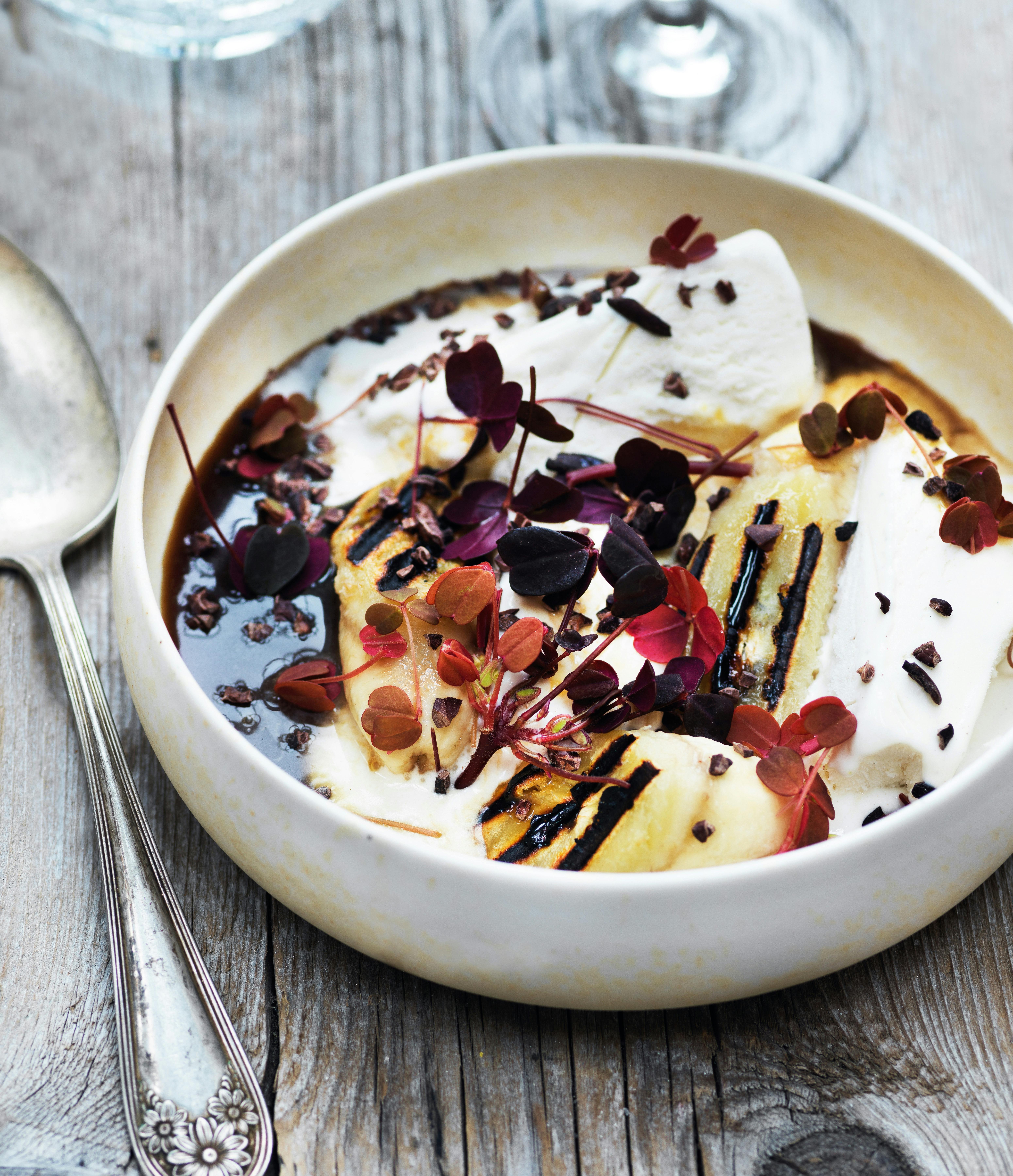 Den mest velkendte dessert med bananer er den klassiske bananasplit. Den originale består af vaniljeis, to bananer flækket på langs, fløde, chokoladesovs og hasselnøddeflager. Der findes også mange nyfortolkninger af desserten med forskellig slags is og fx kahlua.