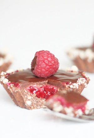 Kommer du til at købe hindbær, så smager de sammen med sprøde bunde af mælkechokolade, ristede hasselnødder og sød chokolade-ganache ret så skønt. Nyd de lækre chokoladetærter sammen med vennerne eller familien.