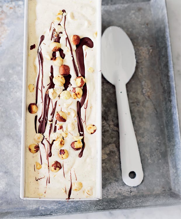 Nutella er ikke bare dejligt på en nybagt croissant eller bolle, det populære smørelse med chokolade og hasselnød er også en forførende god ingrediens i mange andre godter. Fx den her helt vidunderlige nutella-is, der indeholder den gode nutella-smag og den søde flødeis-smag, og som du kan lave helt uden ismaskine. Den vil utvivlsomt blive en favorit-is, og kan laves året rundt og til mange forskellige lejligheder. Prøv også: nutella-is med vanilje