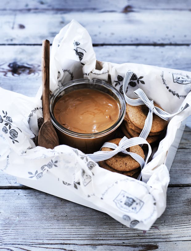 Kog en dåse kondenseret mælk i en gryde med vand i 3-4 timer. Vandet skal bare småkoge.