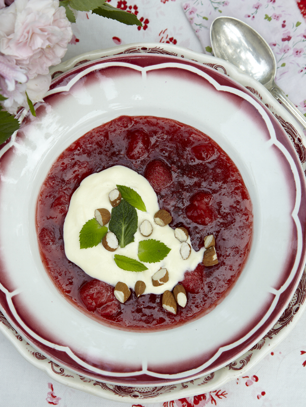 Der er ikke noget som en god jordbærgrød med lidt fløde på toppen om sommeren. Hvis du vil give den klassiske grød et tvist, så prøv at putte lidt hakkede mandler og mynteblade på inden servering. Det både pynter og smager fantastisk. Du kan evt. drysse lidt sukker over grøden til sidst, så den ikke trækker skind.