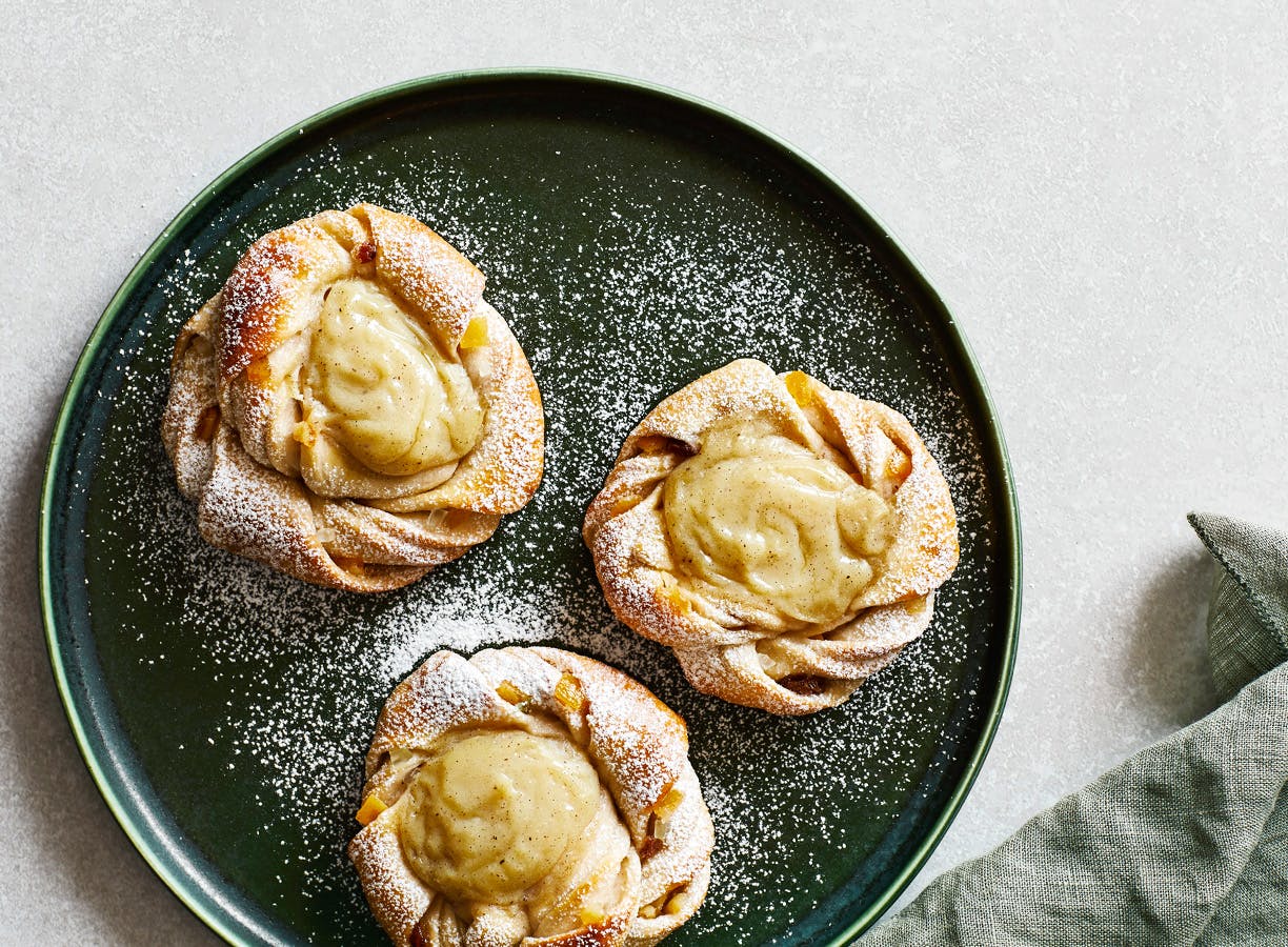 Julen er lig med hjemmebag, så hvorfor ikke prøve en omgang klassiske gærdejskager i nye, julede klæder? Disse kardemommeboller med vaniljecreme er en fryd for både øjne og smagsløg – og så er de slet ikke så svære at lave, som man skulle tro!