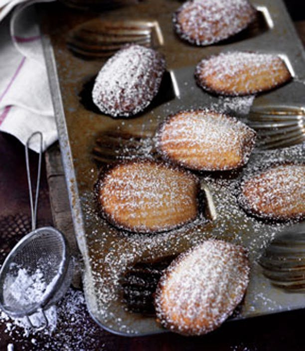 Varm smør og honning op i en lille gryde, til smørret er smeltet. Pisk æg og sukker sammen, og rør det i smørblandingen. Riv appelsinskallen fint, og bland med hvedemel, kardemomme og bagepulver. Rør melblandingen i æggemassen, og tilsæt mælk. Fordel dejen i den smurte madeleine-form, og bag kagerne ved 220° i 6 min. Drys med sigtet flormelis.