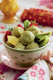 * TILBEHØR: Frisk frugt, for eksempel kiwi, jordbær og ananas