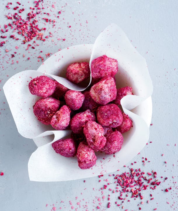 Fyld konfekt-skålen med pink macadamianødder med rosenblade og hvid chokolade, der ikke kun smager så englene synger, men også ser flotte ud og pynter på bordet. Servér dem for dine veninder, og imponér dem med denne lækre opskrift på moderne konfekt.