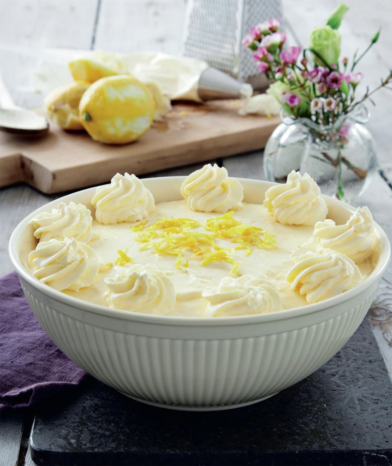 En af vores yndlingsdesserter er uden tvivl den klassiske gule citronfromage, som vi får alt for sjældent. Den har været fast inventar på din mormors kaffebord med masser af fløde til, men den er stadig en dejlig forfriskende dessert, som er ved at vende tilbage til det moderne kaffebord. Og den smager i øvrigt fuldstændig fantastisk med et drys lakridspulver ovenpå fløden.