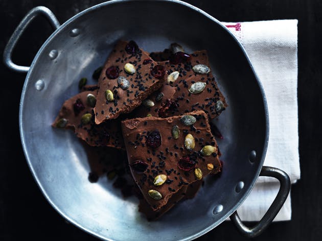 Opskrift på chokolade med tranebær og græskarkerner: