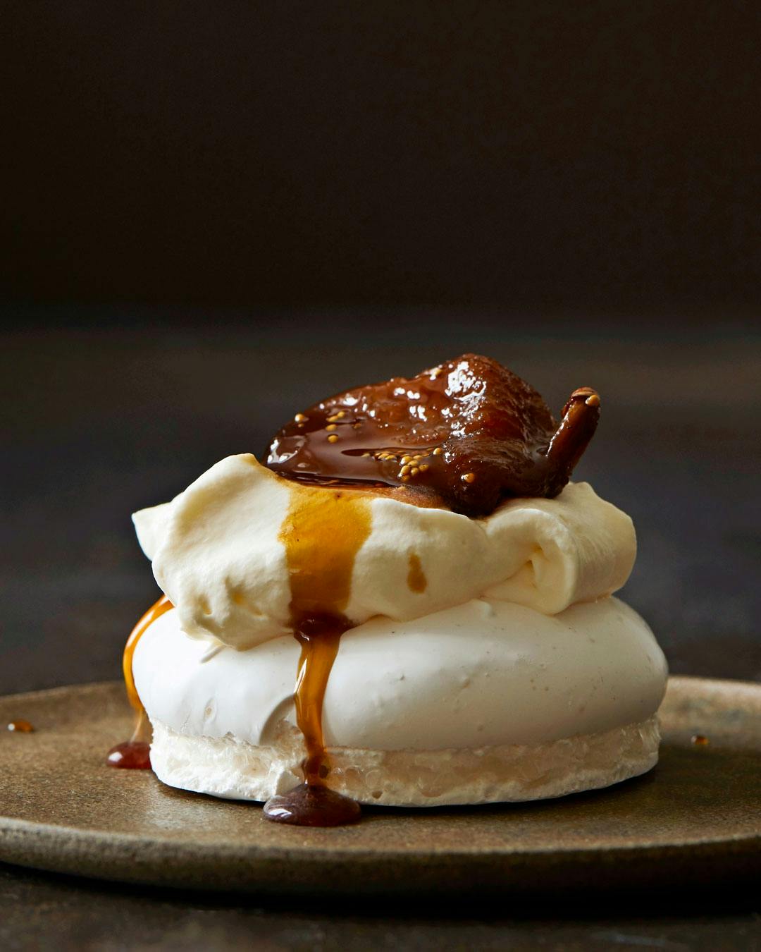 Mini-pavlova med karamelliserede figner
