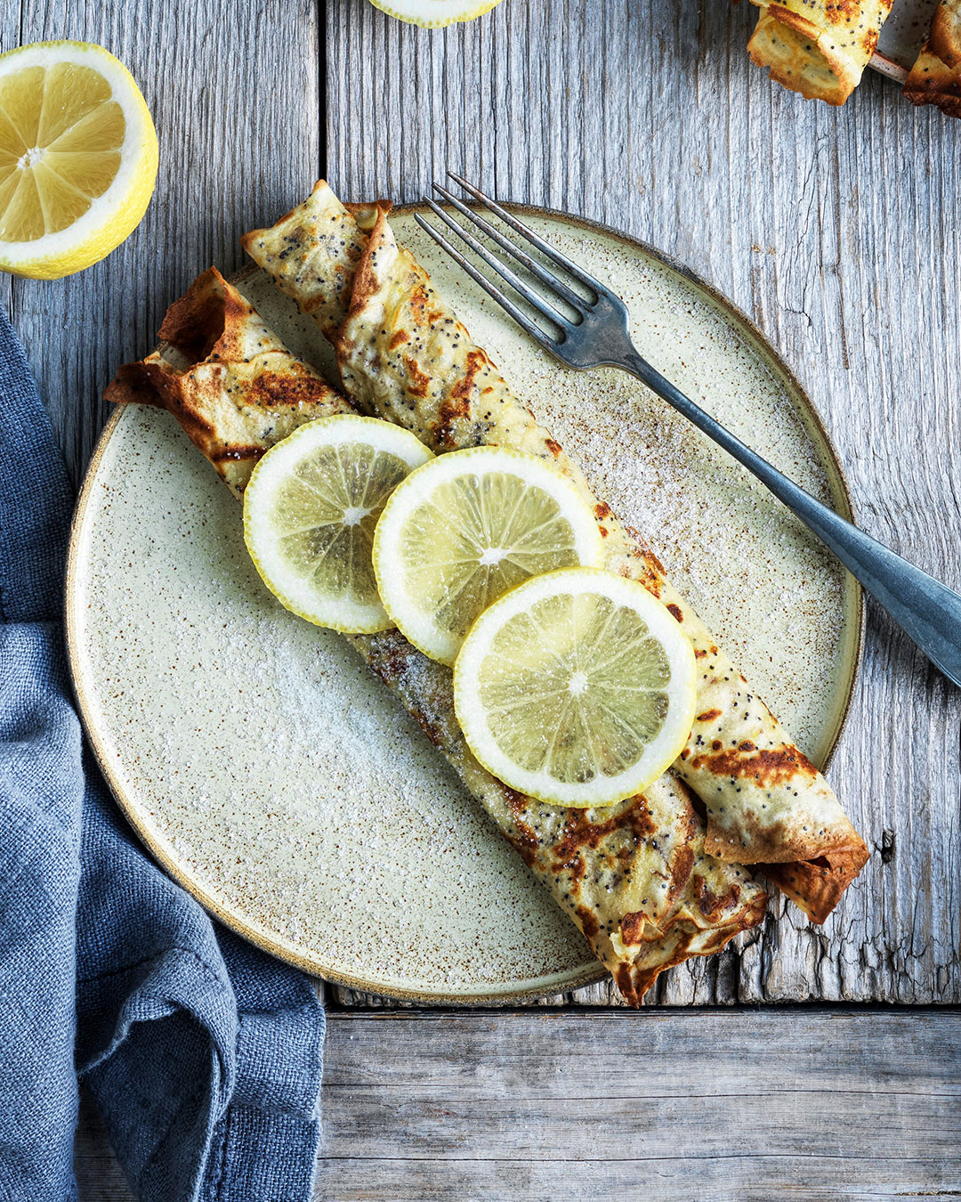 Servér pandekagerne lune med masser af citronsaft og et drys sukker på toppen.