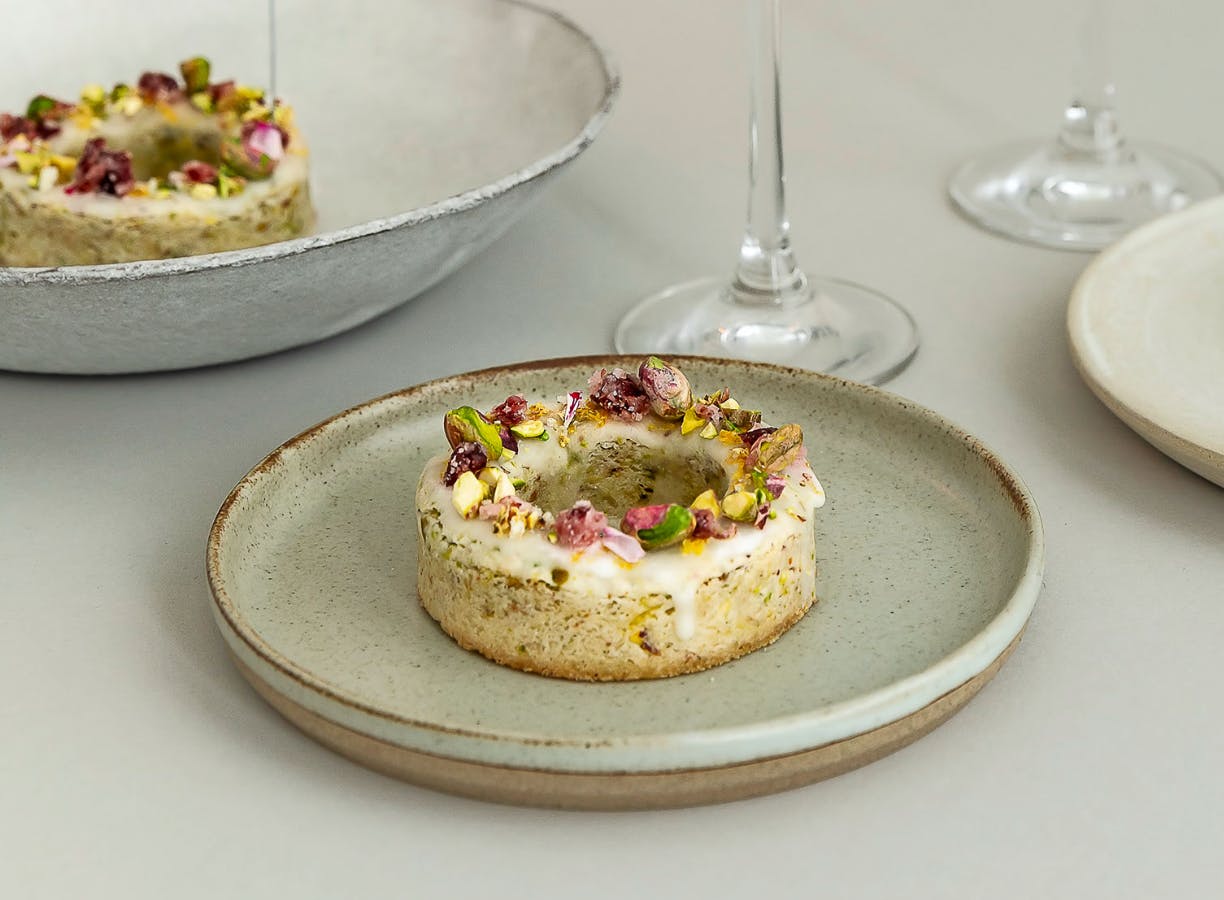 Kan du godt lide at nyfortolke klassiske desserter og imponere dine gæster? Så er det her kagen for dig! Med pistaciens fyldige smag, syrlige toner fra meyer-citron og et sødt, frugtigt finish med krystalliserede tranebær, tager den alle med storm.
