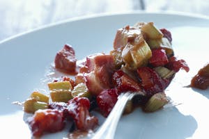 Spis rabarberkompot på et stykke ristet brød, som tilbehør til is og kage eller som en del af en dessert.