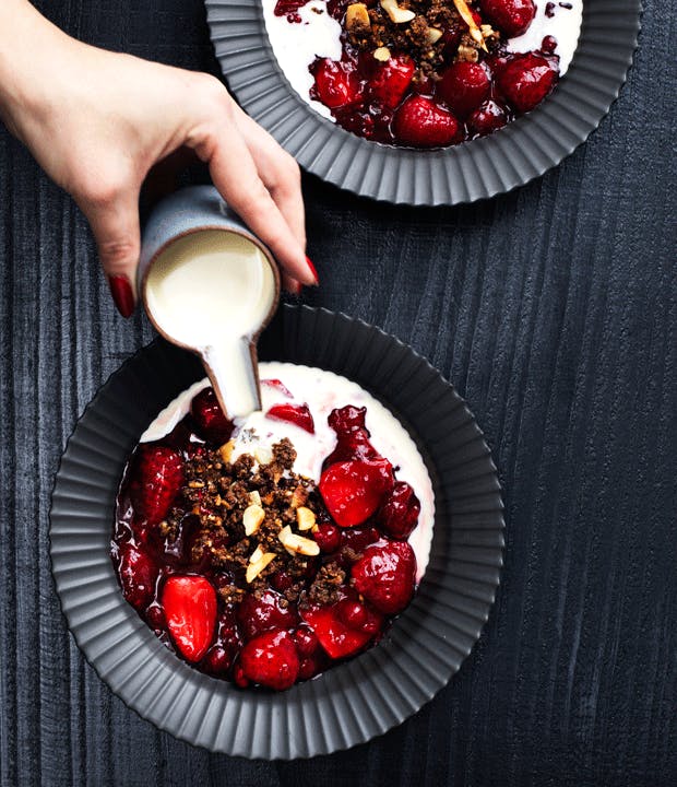 Andet end rødgrød med fløde? Prøv denne luksusgrød med jordbær og hindbær!