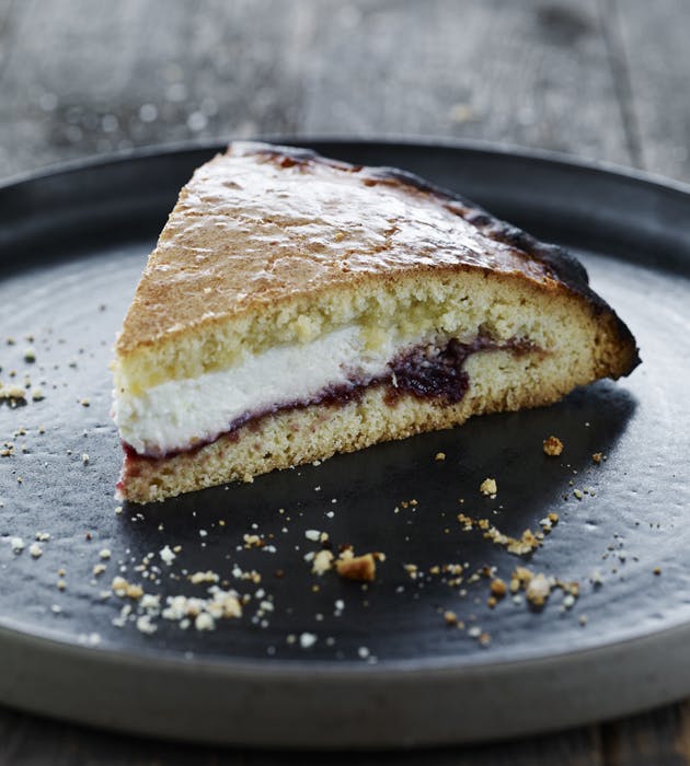 Brændt ricottakage med kirsebærmarmelade er en klassisk kage fra Lazio og dermed også fra Rom. Den er en drøm af en kage, som smager godt i flere dage efter, den er blevet bagt. Dog kan det være en udfordring at samle selve kagen, og derfor har vi lavet et galleri med en vejledning til at montere den berygtede ricottakage.