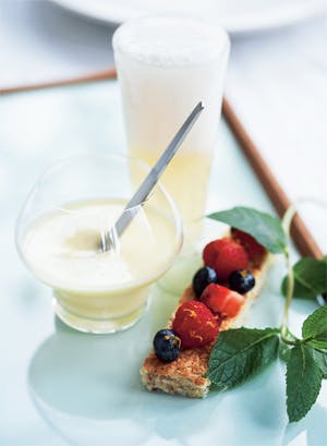 Sabayonne med Champagne, Mandelbisquit og Bærsalsa: