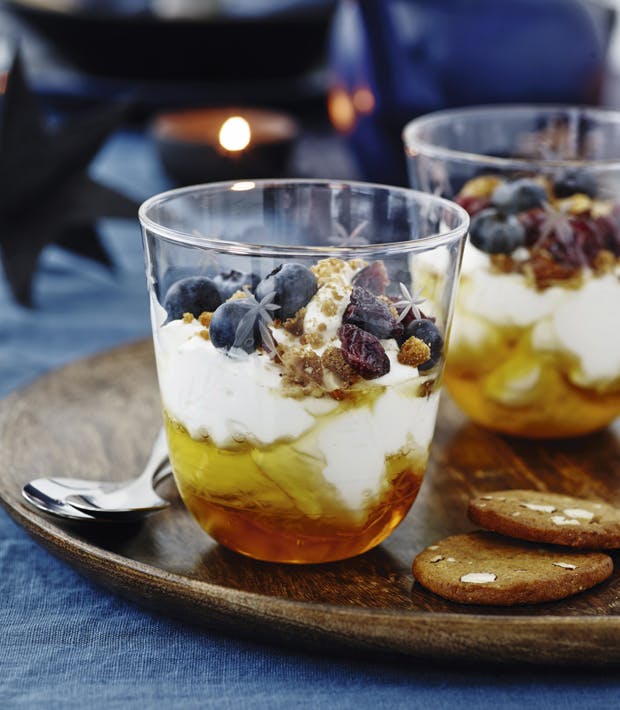 Mangler du inspiration til en morgenmad som smager af jul her i december måned, så har vi den perfekte opskrift. Skyr er altid et godt udgangspunkt. Bland skyren med honning, frugt og drys bunkager ud over. Det vil give en crunchy og lækker smag.
