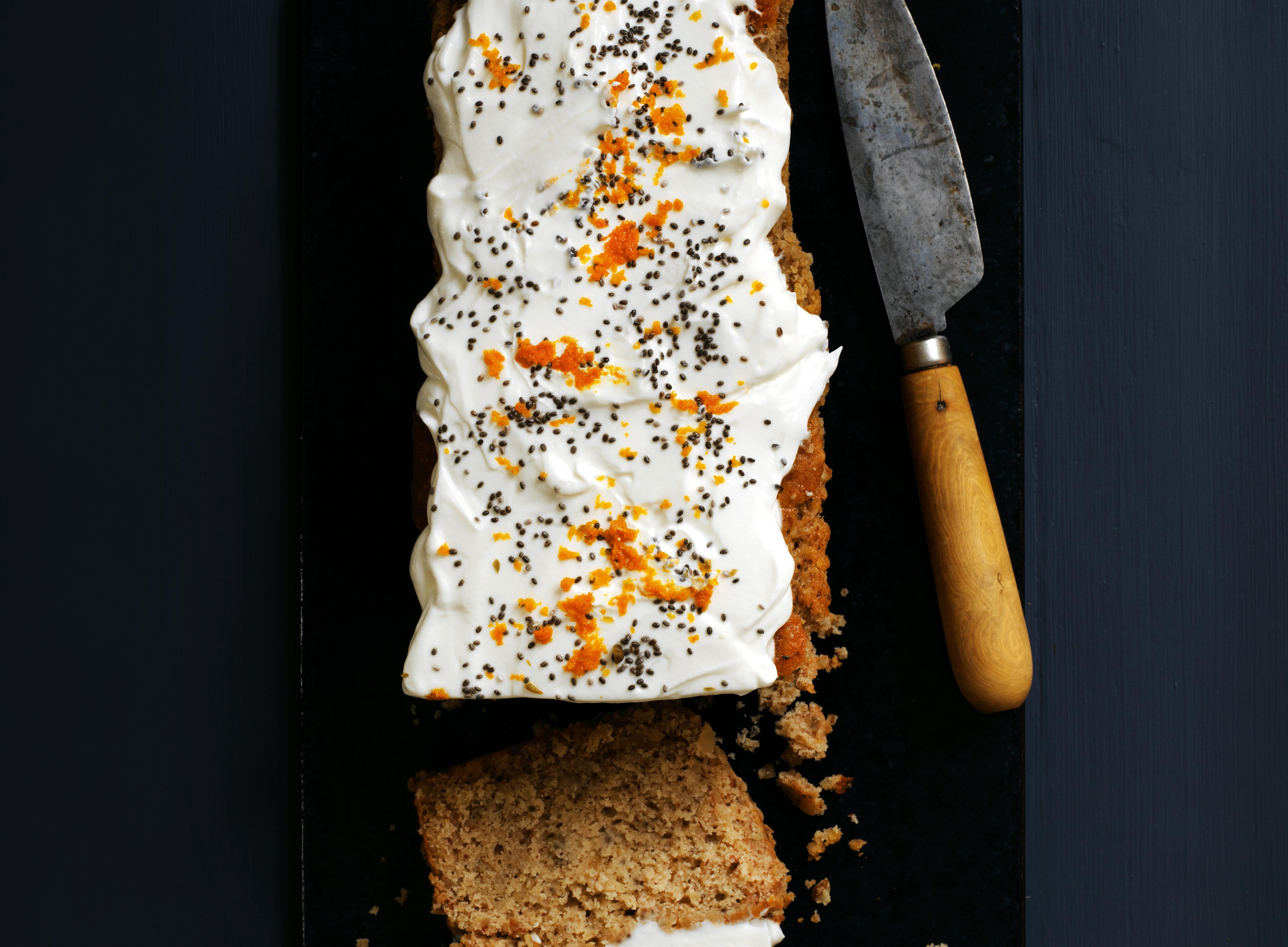 Chia er en op til tre meter høj plante fra Sydamerika. I bagværk er frøene en sund måde at tilføje lidt knas og sprødhed på, da de har et meget højt indhold af både kalk, omega 3-fedtsyrer, proteiner og en masse andre gode sager. Desuden hjælper frøene med at holde kagerne fugtige, da de kan opsuge deres vægt 10 gange. Det er altså chiafrøene, der sørger for, at denne citronkage er dejlig svampet.