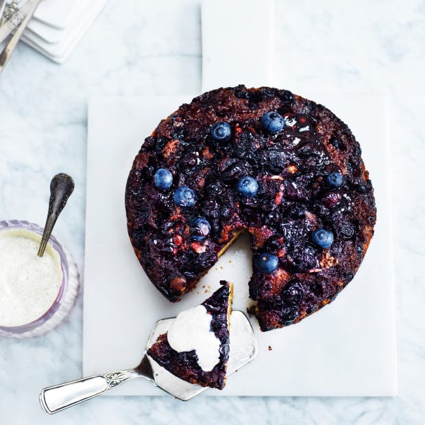 I en upside down-kage ligger frugten eller bærrene nederst under bagningen og ikke øverst, hvilket er måden man typisk laver en lækker frugttærte. Frugten ligges nederst i formen, men når du server kagen, vender du den på hovedet ud på et fad, så frugten vender op af - deraf ordet upside-down.