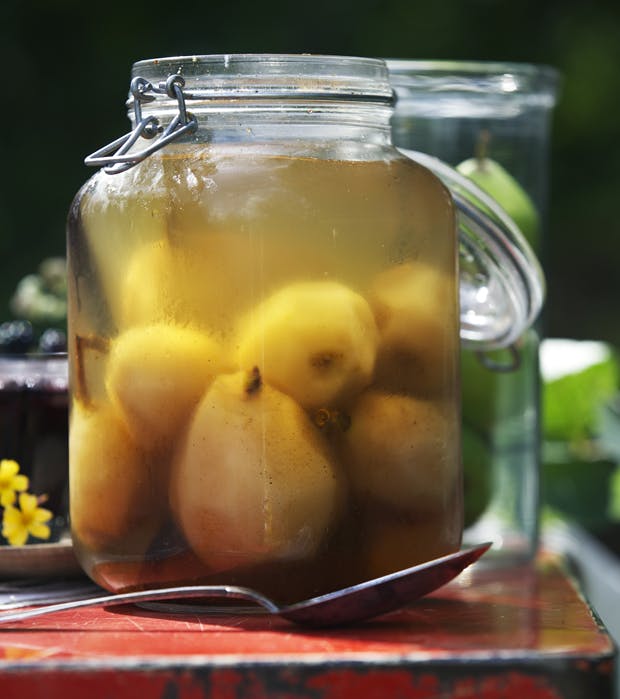 TIP: Du kan også konservere pærerne i sukkerlagen ved at hælde lage og pærer på rene, skoldede glas. Opbevar glasset i køleskabet. De konserverede pærer kan holde flere uger.