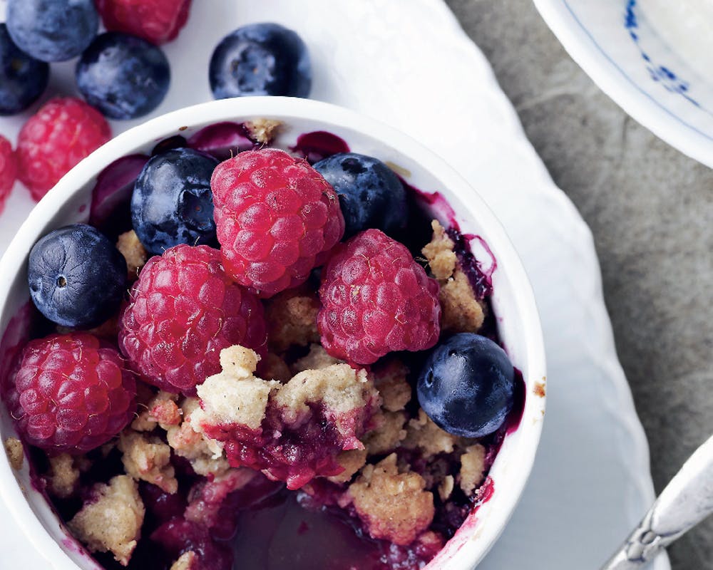 BLÅBÆR-HINDBÆR-CRUMBLE