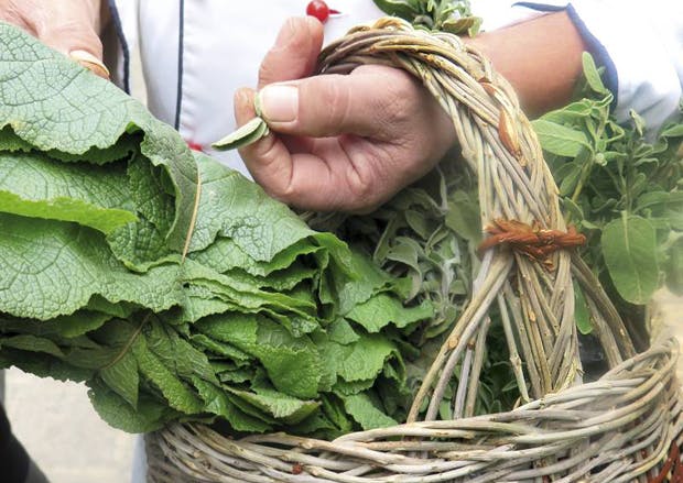 Blancher brændenældebladene i 15 sekunder i vand, der er saltet, og køl dem øjeblikkeligt ned i isvand. Skær sheeba, rødbedblade i fine strimler, og vend dem på en middelvarm pande med salvie i vindruekerneolie i ca. 10 minutter.