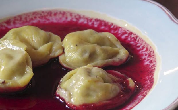 Sæt en gryde med rigelig vand over, tilsæt salt. Varm rødbedesaucen op, før du koger tortellinierne. Når vandet koger, putter du tortellinierne i. Du må ikke overfylde gryden. Kog dem i 3 til 5 minutter, eller indtil de flyder op til overfladen. Hæld vandet fra, og lad dem dryppe af i en si. Server tortellinierne med rødbedesaucen.