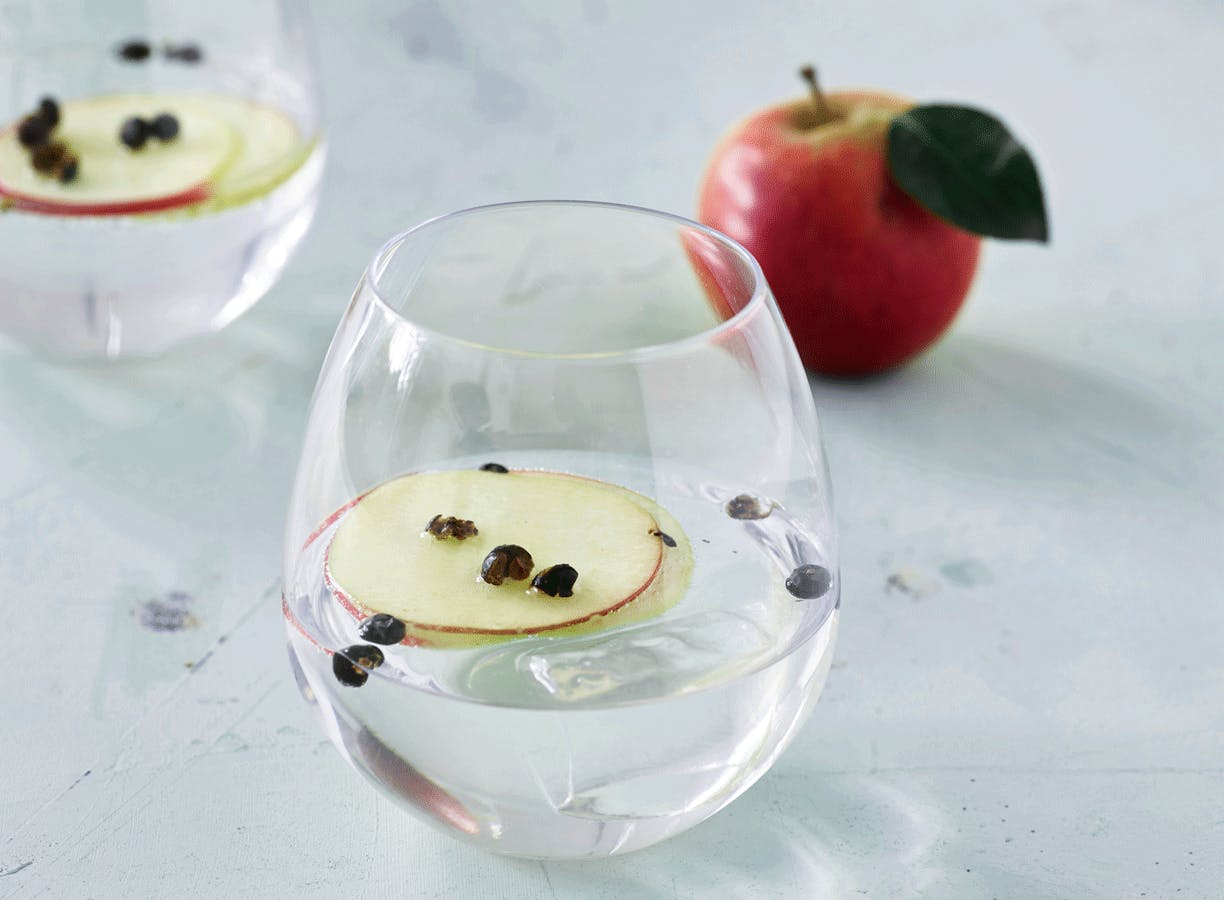 Den her udgave er med enebær og æble, hvilket passer perfekt til drinken. Gin er nemlig smagssat med enebær, så du kan fin fremhæve smagen ved at tilføje de friske af slagsen.