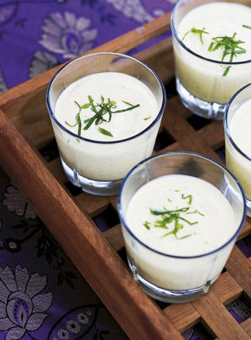 Mango lassi kan også bruges som dessert. Undlad i så fald isterningerne og mynten. Anret din mango lassi i portioner og frys til løs is i ca. 1½ time. Server din mango lassi med mandler i stedet for mynte.
